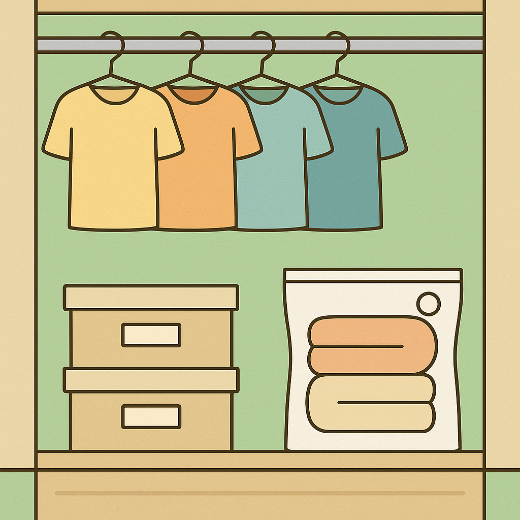 옷장이 꽉 차 있으면 입을 옷이 없어도 답답합니다. 옷은 계절별로 나누고, 색깔·종류별로 걸어두면 찾기 쉽습니다. ‘1년간 입지 않은 옷은 기부 또는 처분’ 원칙을 세우면 공간 활용이 훨씬 좋아집니다. 수납 상자와 압축팩을 적절히 사용하면 옷장의 효율이 극대화됩니다.